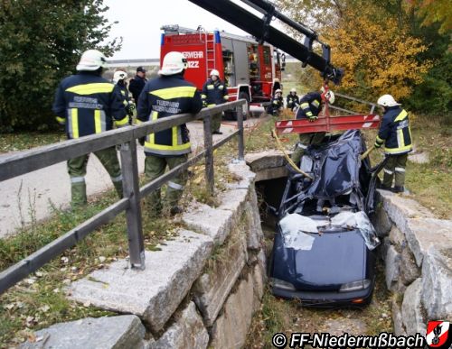 von der Straße abgekommen, in einen Regenwasserschacht gestürzt